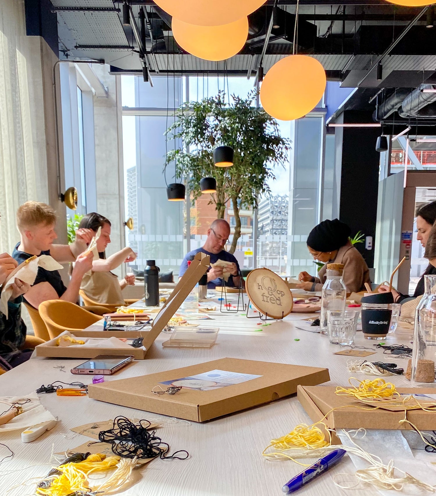 - Seated embroidery workshops – perfect for teams to sit together, slow down and enjoy a shared creative experience. Sessions usually last 90 to 120 minutes and participants leave with a small stitched piece they have made themselves.