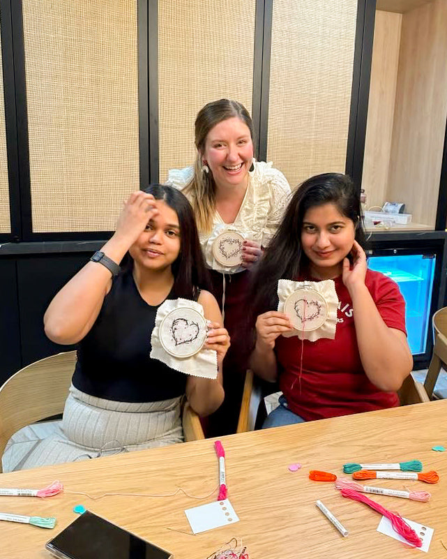 I want you to leave a Hoop & Fred workshop feeling better than when you walked in and excited to go home and create more. Maybe you'll fall head over heels for embroidery as I did, or perhaps you'll simply enjoy spending a couple of hours being arty, leaving with the confidence to try other new things. My workshops are designed to be friendly, fun, and suitable for beginners. Everyone gets the time to ask questions and receive one-on-one tuition if needed.